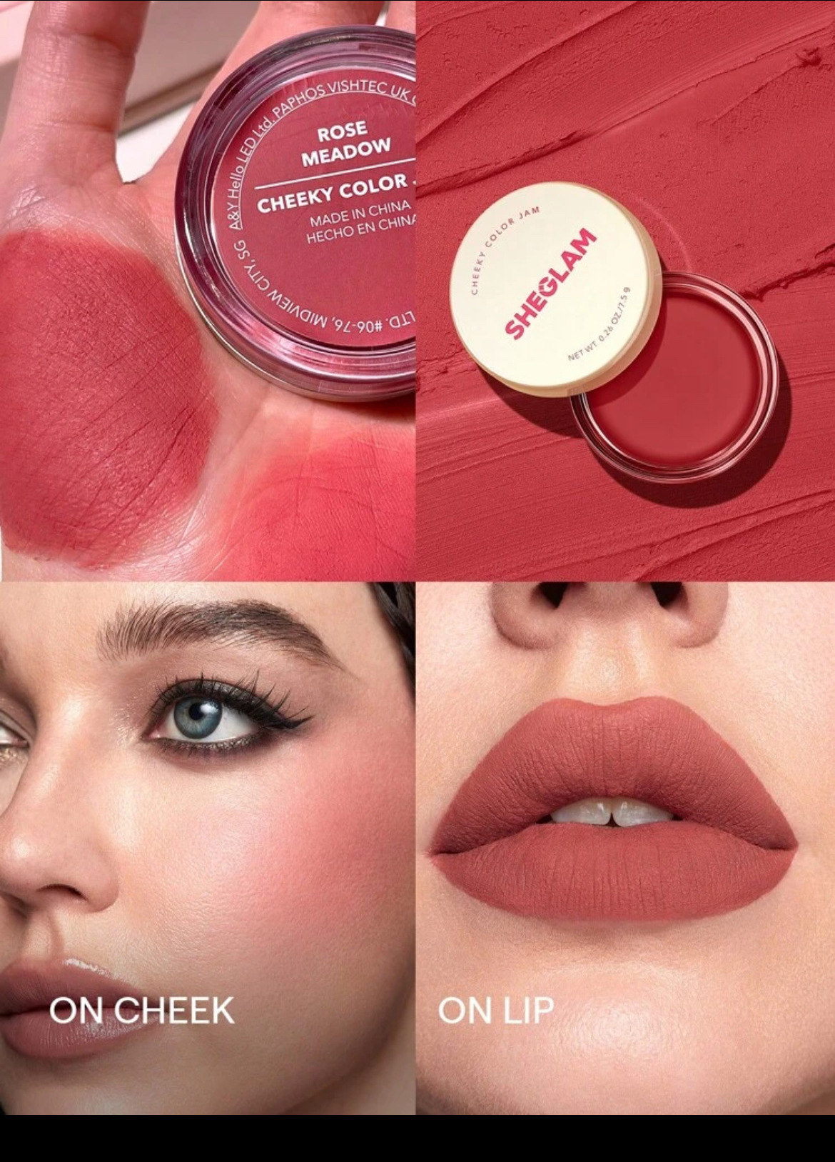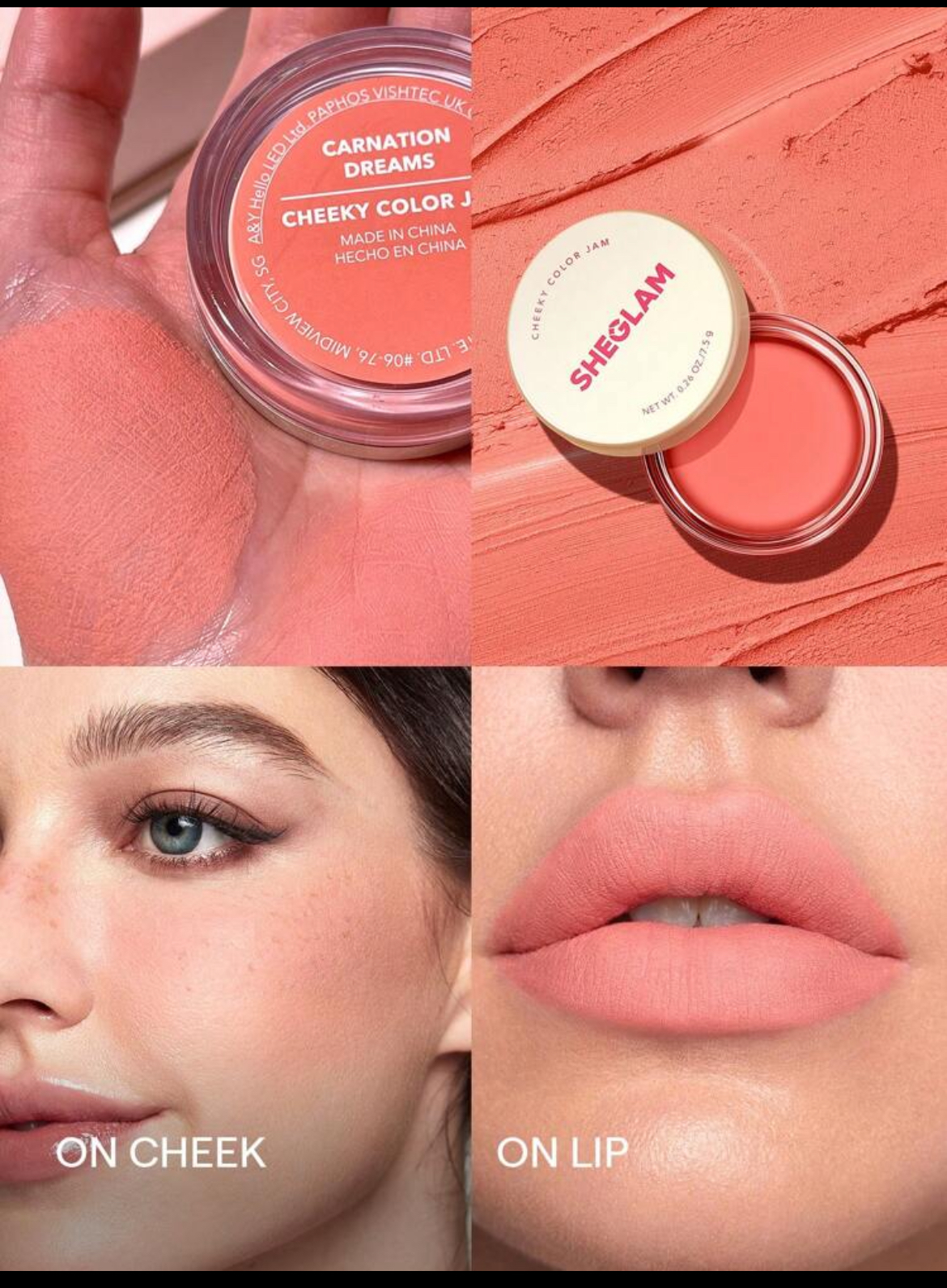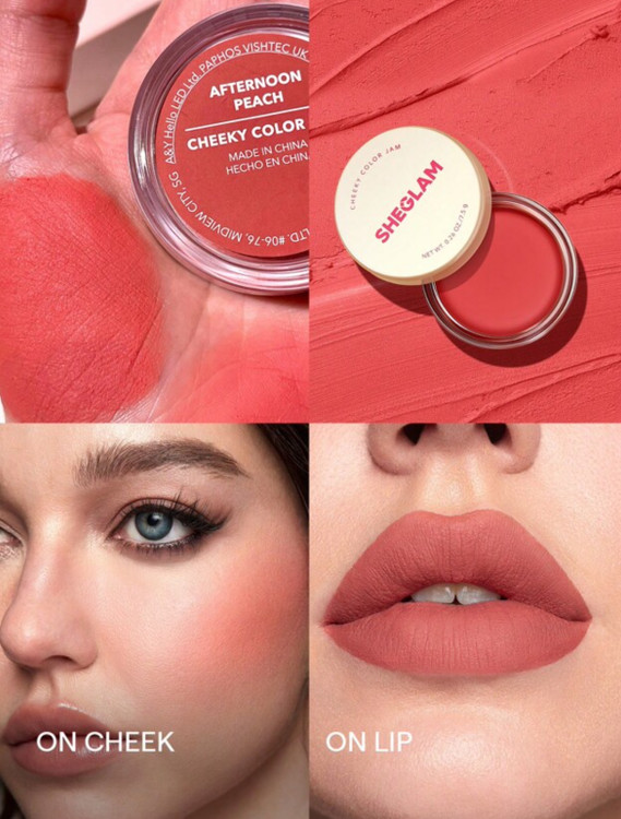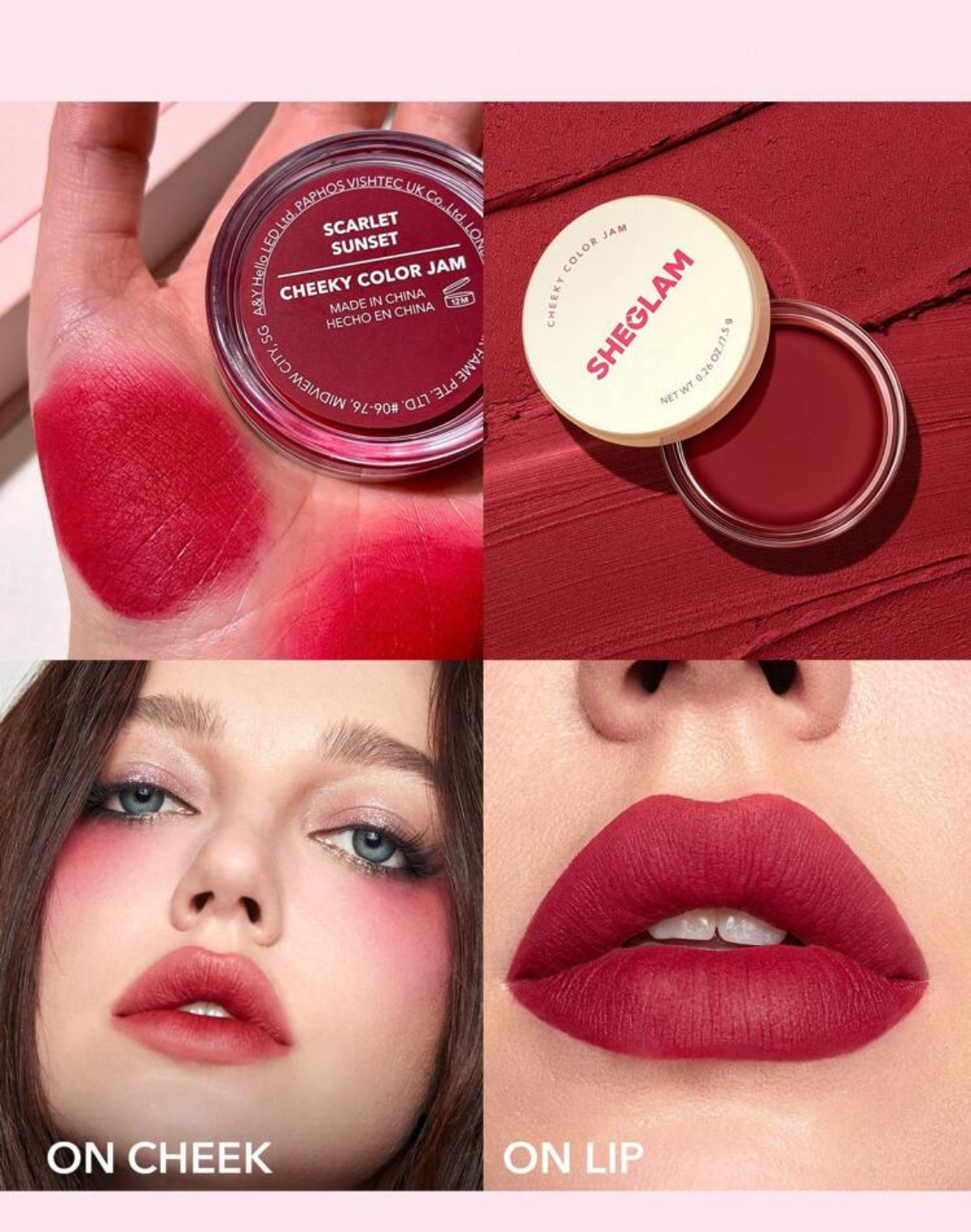 رژ و رژگونه کرمی SHEGLAM Cheeky Color Jam – Afternoon Peach با ۶ طیف رنگی بینظیر، هم برای گونه و هم لب قابل استفاده است.
